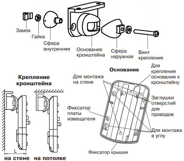 - Кронштейн для изменения положения зоны обнаружения в пространстве.
