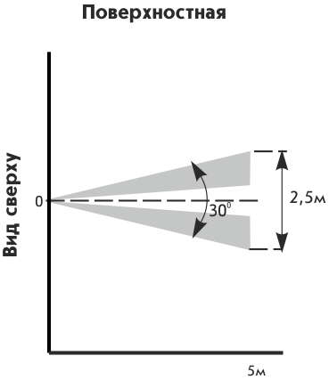 | угол зоны обнаружения в горизонтальной плоскости | 30° |