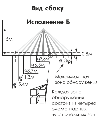 | Дальность зоны (Охранные датчики) | 13-14 метров |
